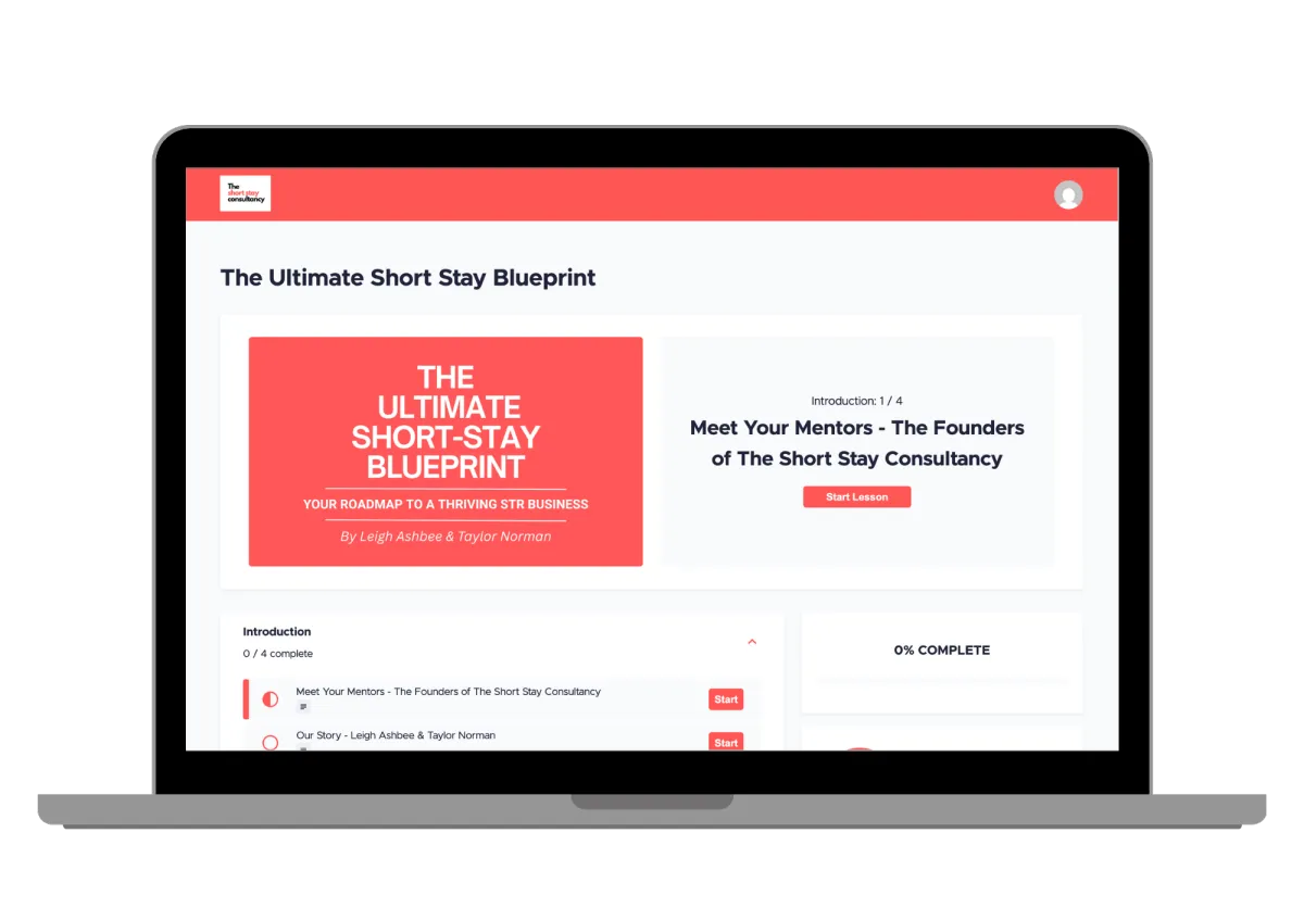 Within a few hours of purchasing the Ultimate Short Stay Blueprint youâll have full and instant access to the platform. Everything is available on-demand - anytime, anywhere - from your phone or laptop.